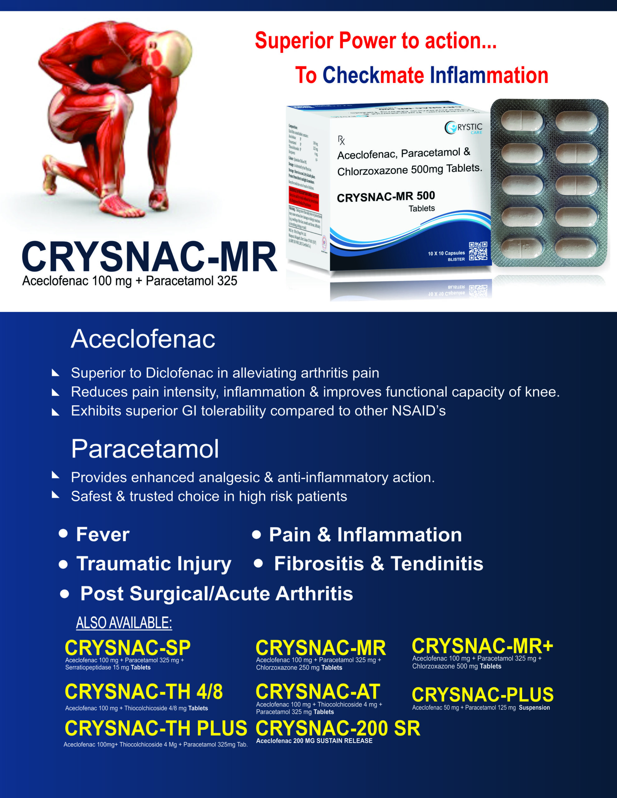 Aceclofenac 100mg. Paracetamol 325mg Tab. Chlorzoxazone 250mg Tab.
