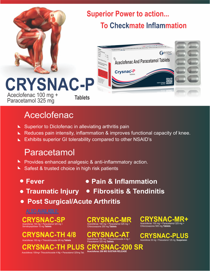 Aceclofenac 100mg, Paracetamol 325mg Tab.