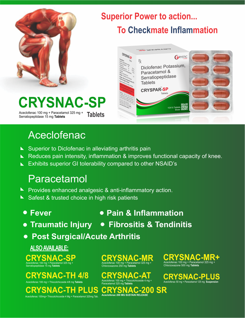 Aceclofenac 100mg, Paracetamol 325 Mg Serratiopeptidase 15 Mg Tab.