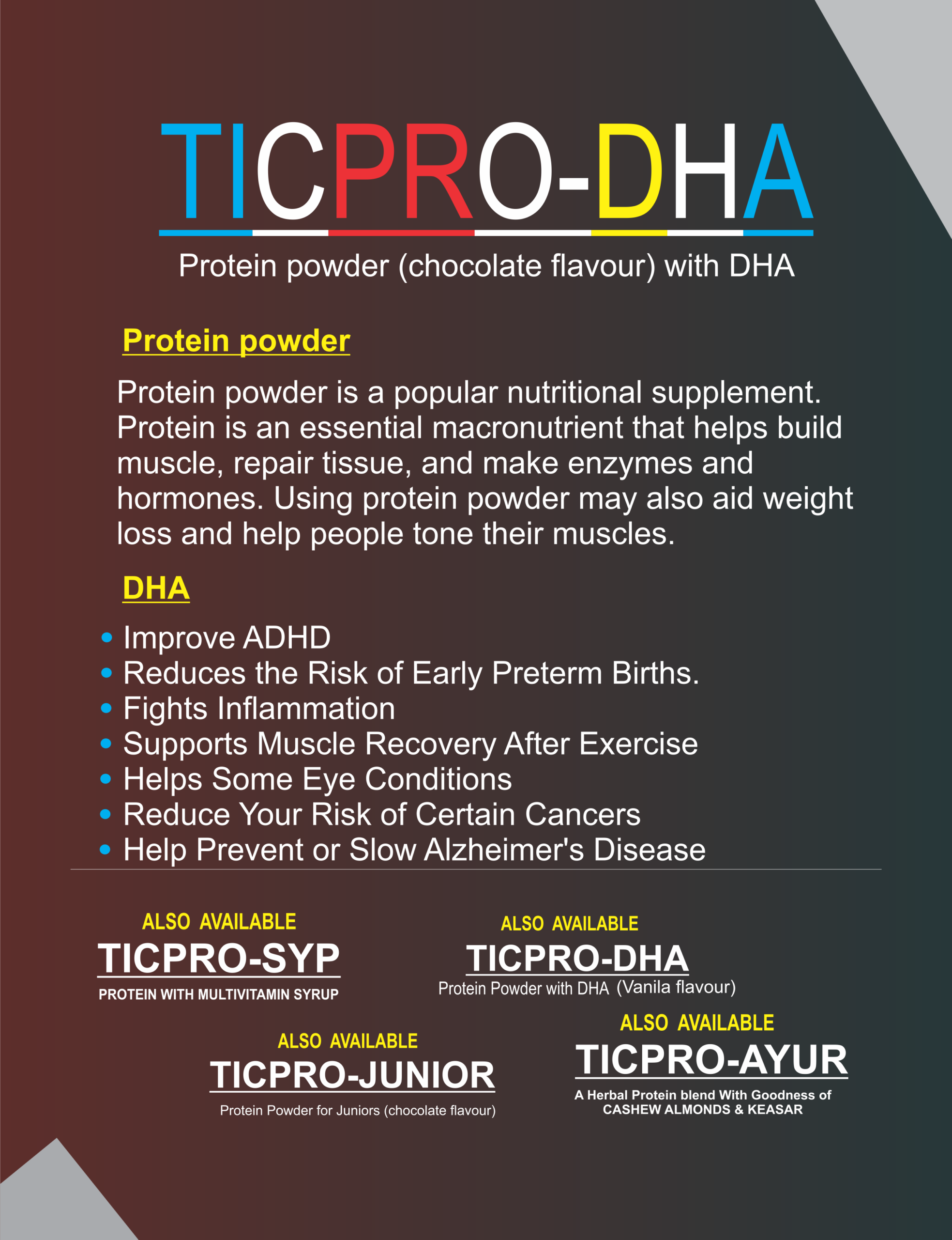 Protein Powder ( CHOCOLATE FLAVOUR & VANILA FLAVOUR ) WITH DHA